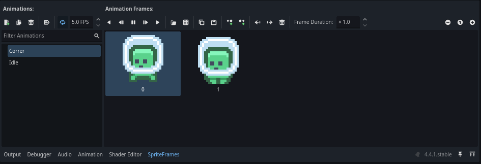 ¡Tip! En caso de usar un Spritesheet de 2 frames como el que usamos en este tutorial, es recomendado seleccionar el 2do frame de animación primero, de esta manera el personaje empezara la animación en movimiento, y no parecerá arrastrándose al mover