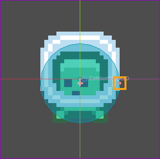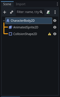 Ahora que podemos ver a nuestro personaje en el editor, tenemos que darle una forma, con la que podrá interactuar y colisionar con el mundo y sus elementos. Para añadir esta forma, crearemos un nodo CollisionShape2D como hijo de nuestro CharacterBody2D.