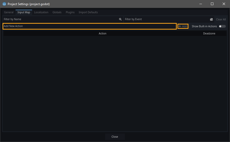 Para crear una acción, tendremos que introducir el nombre de esta en la caja de texto Add New Action/Añadir una nueva acción, y presionar la tecla Enter en tu teclado, o el botón de Añadir/Add localizado en el extremo derecho.