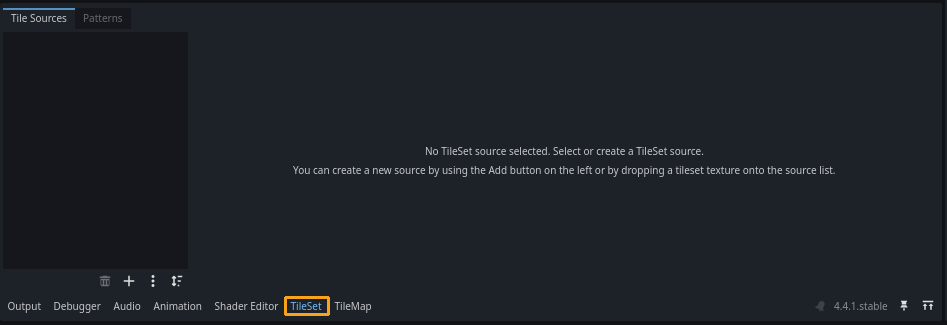 Al crear un nuevo Tileset, se creara una nueva pestaña en la parte inferior del editor donde podremos empezar a editar nuestros tiles.